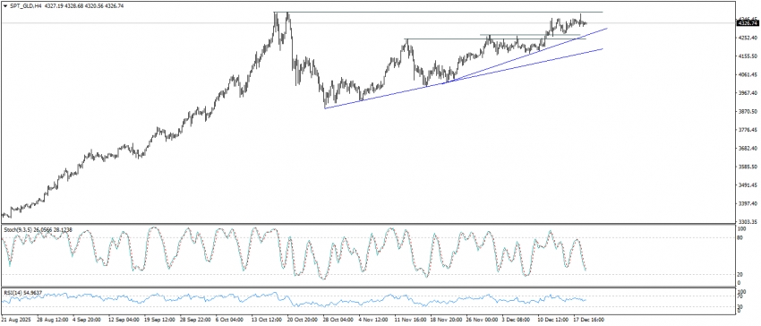 من الناحية الفنية يتداول الذهب اعلى مستويات دعم كثيرة اقربها عند مستويات 4310 ثم دعم خط الاتجاه الصاعد 4275