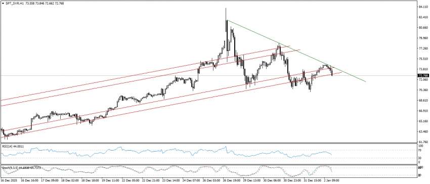 وصل الفضة فى ارتدادها الصعودى الذى توقعنا فى التقرير السابق انه سيكون ضعيف الى مستوى 74.50 وهذا المستوى يمثل مقاومة خط الاتجاه الهابط وطالما ظلت الفضة اسفل هذا الخط واسفل مستوى المقاومة 74.50 سيترجح الهبوط مرة اخرى الى مستوى 71 الى 70 مرة اخرى